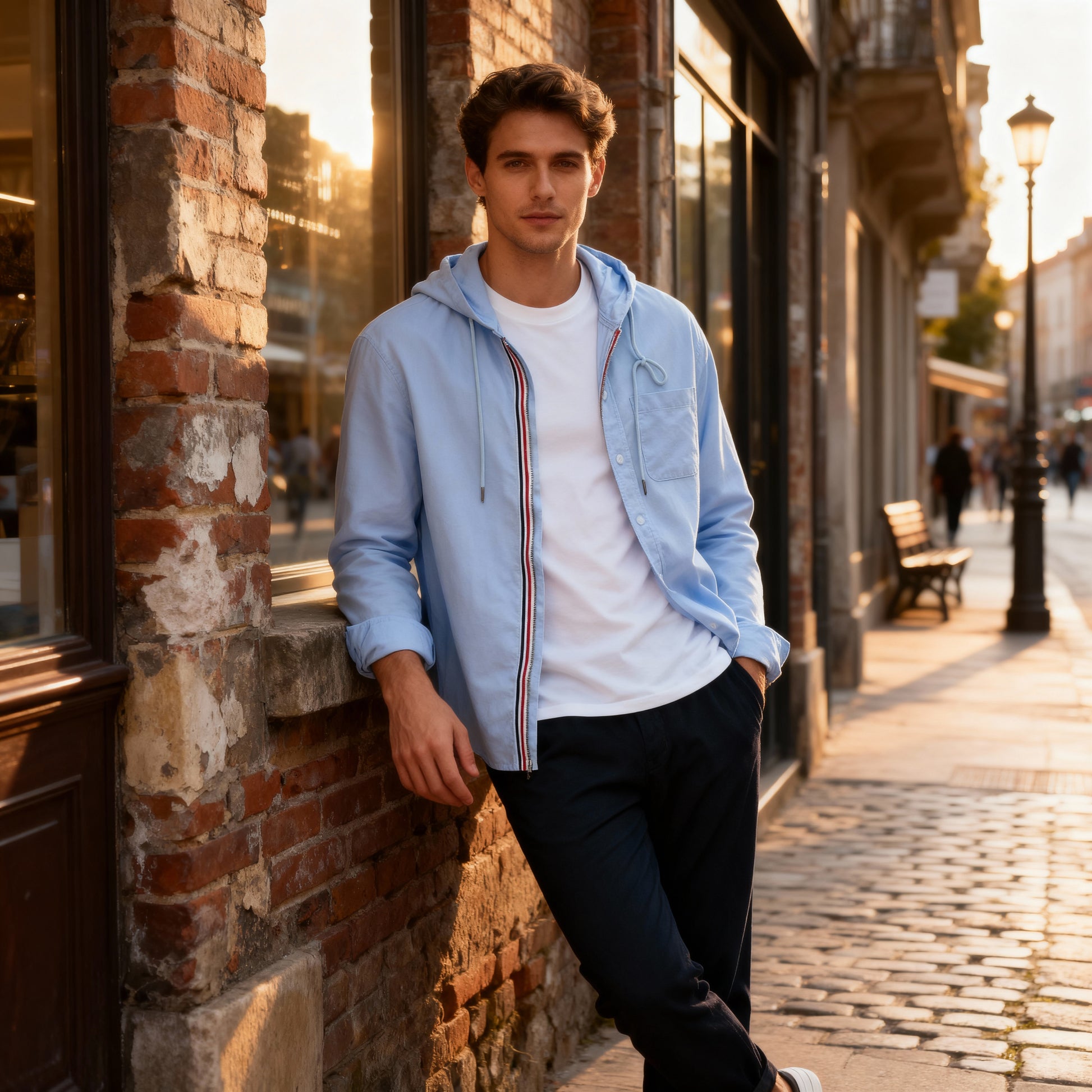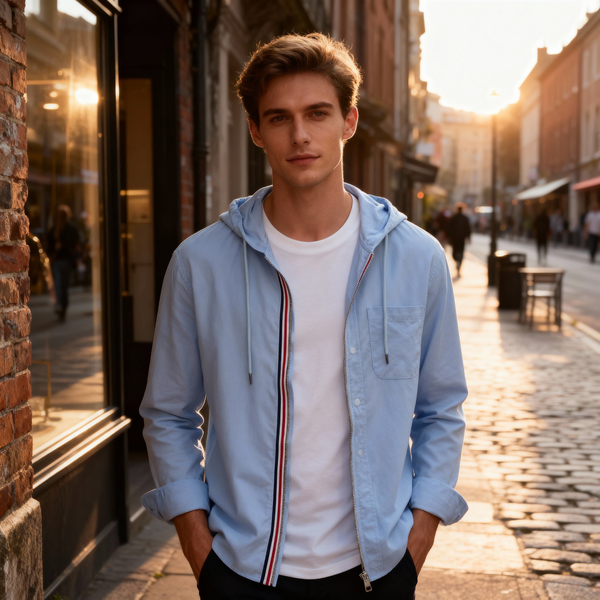 Experience a seamless blend of timeless British sophistication and modern comfort with The Wellington Classic. Expertly crafted from 100% premium cotton, this piece ensures breathability and softness throughout your day. The sleek zipper and signature stripe detailing add a touch of elegance, making it perfect for both professional settings and relaxed outings.